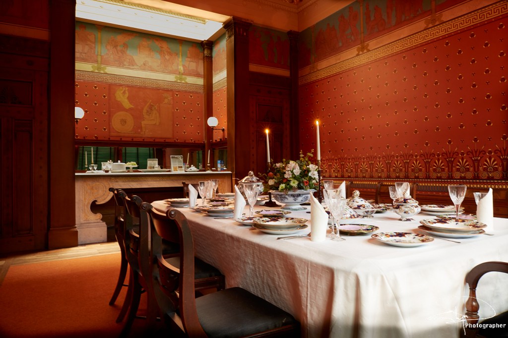 Built for James Couper in 1852, the architect chosen was Alexander Thomson. Thomson was known for the Greek/Roman style he embodied within his work, this earned him the name of Alexander ‘Greek’ Thomson. Holmwood is the finest example of Thomson’s work surviving today. The house and gardens are owned by the National Trust for Scotland. The NTS have spent a significant amount of time and money restoring Holmwood to its original splendour. Thomson not only designed the house but also designed the interior decoration. For example, the magnificent dining room with the Flaxman Friezes and the palour with the near circular bay window and detailed cornices. Holmwood is not a mansion, it is a home, a very spectacular home.